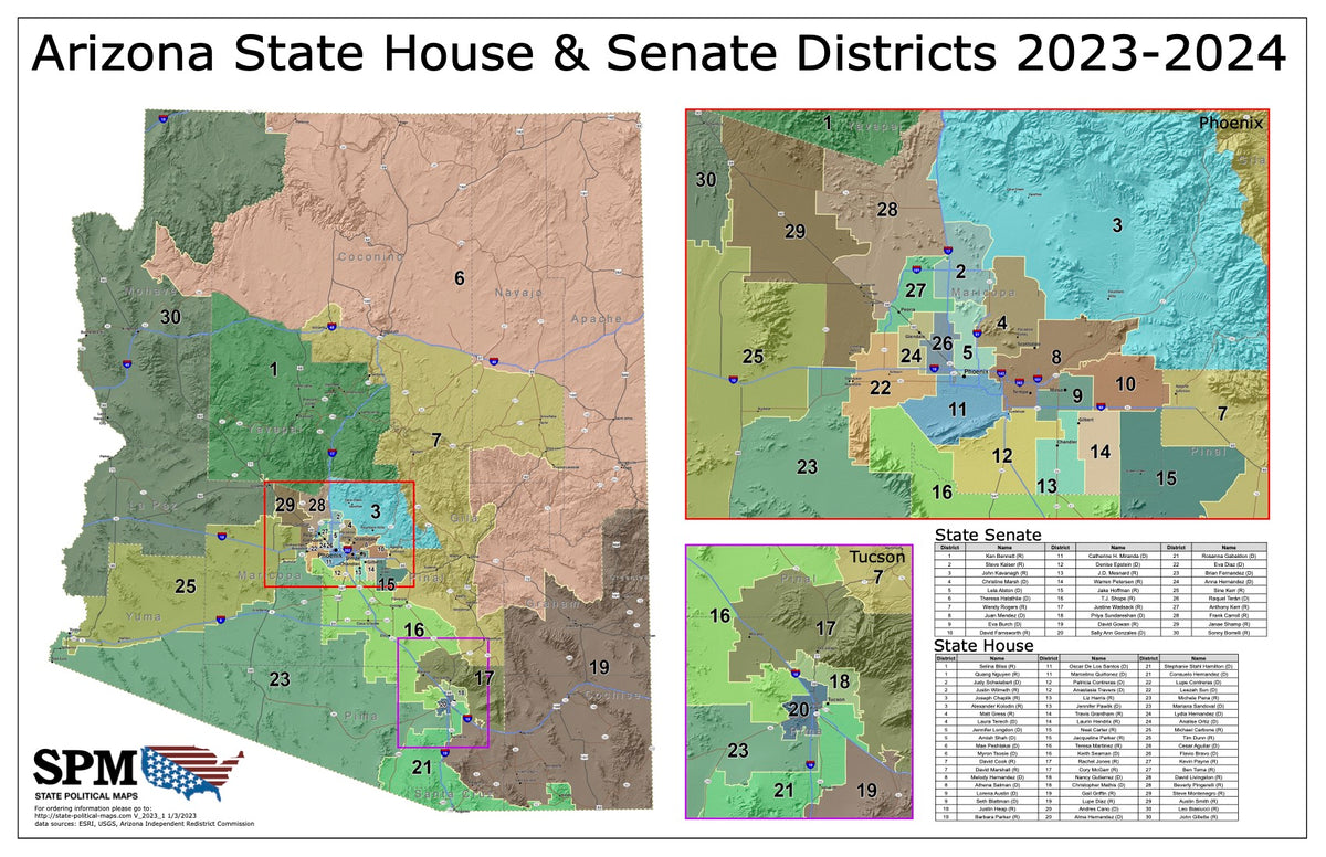 Arizona Political Map 2025 Arizona Political and State Legislative Wall Maps โ State : Arizona has become a key piece of the electoral map for the 2025 presidential election and casts a harsh light on our state and its political leadership. Arizona leaders from both major . NOTE: All the numbers on this page are for the 2019-2025 Senate election cycle and based on Federal Election Commission data available electronically. (“Help! The numbers don’t add up”) Sometimes .